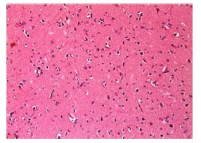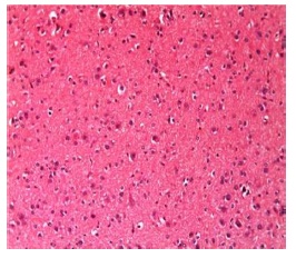 Concerning the histopathological findings, sections of normal controlled groups showed that the cerebral cortex exhibits normal neurons surrounded by nerve fibers and blood vessels (Figure 4). In LPS induced AD neuroinflammatory rats, an observed multiple plaques formed of lamellated fibrils. Such plaques were surrounded by multiple apoptotic nuclei (Figure 5). Severe inflammation with congested blood vessels was also observed with deposits of amyloid material in their wall and surrounded by extravasated red blood corpuscles when compared with the normal control group (Figure 6). Administration of MSCs showed less dense plaques, multiple and less prominent apoptotic nuclei (Figure 7). On the other hand, administration of milk kefir grains revealed disappearance of multiple plaques, some dense plaques with few apoptotic nuclei (Figure 8). MSCs and milk kefir grains administration lead to slight focal plaques formation, multiple apoptotic nuclei with slight congestion in blood vessels (Figure 9). On the prophylaxis group, there was a slight focal plaques formation, few multiple apoptotic nuclei with less diffused congestion in blood vessels (Figure 10).
