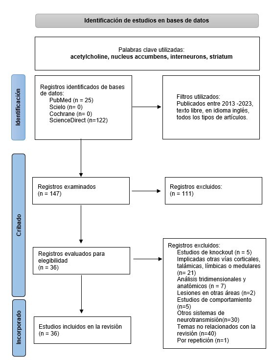 acetilcolina. Se revisaron 147 artículos con un rango de búsqueda de diez años